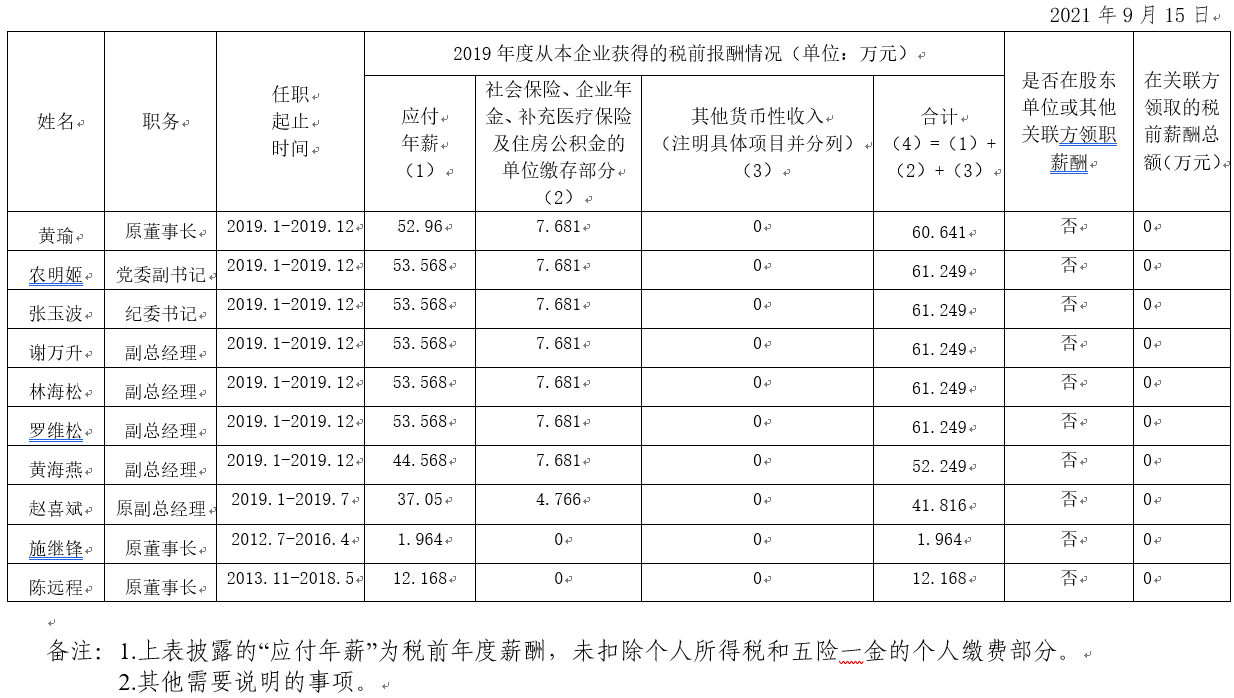 2019年度调教 公司企业负责人薪酬信息披露