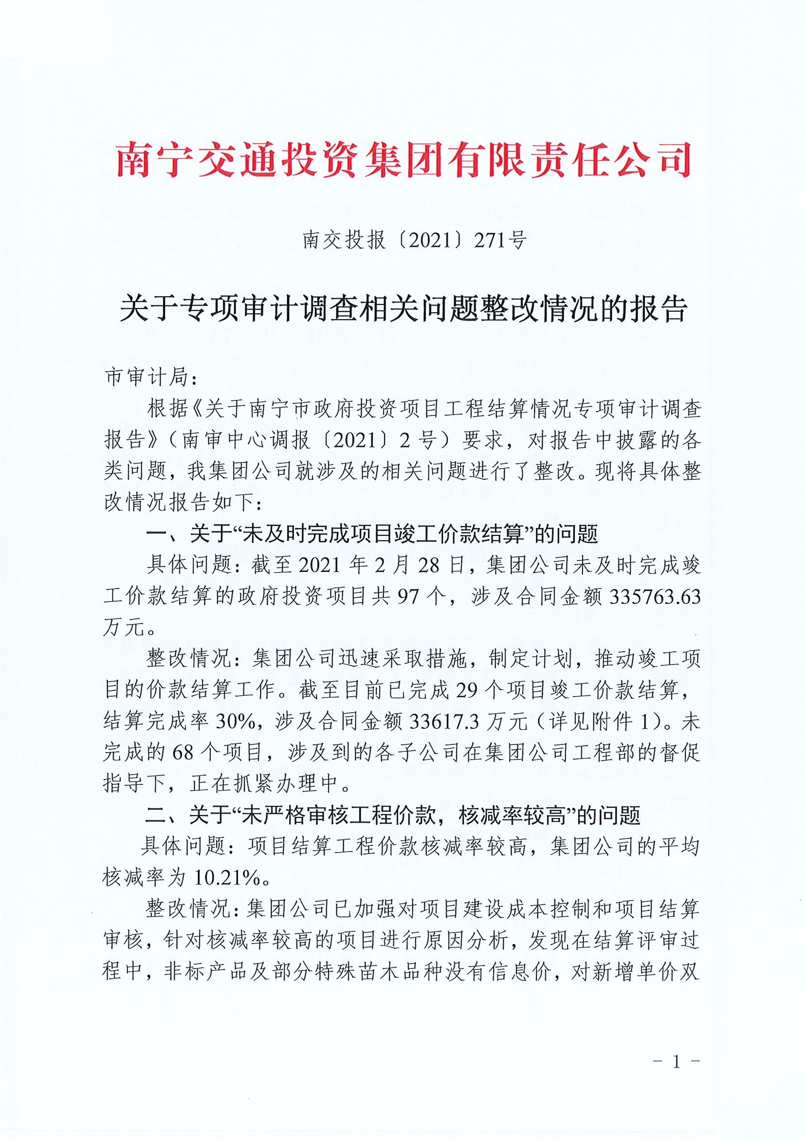 2020年度审计项目发现问题整改公开-南宁市政府投资项目工程结算情况专项审计调查