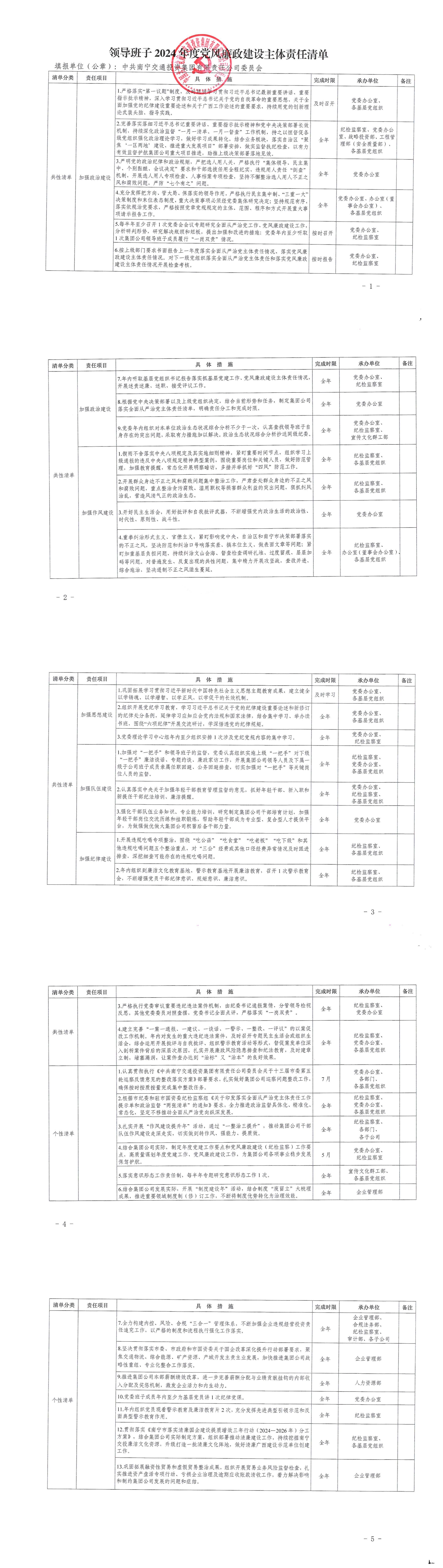 领导班子主要责任人2024年度党风廉政建设第一责任人清单