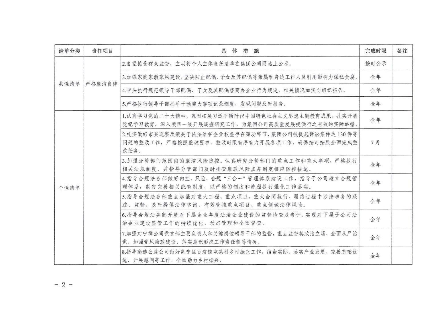领导班子其他成员2024年度党风廉政建设“一岗双责”清单(五)