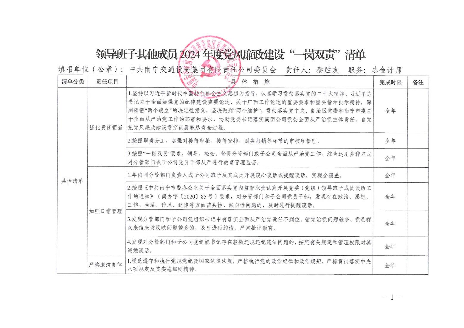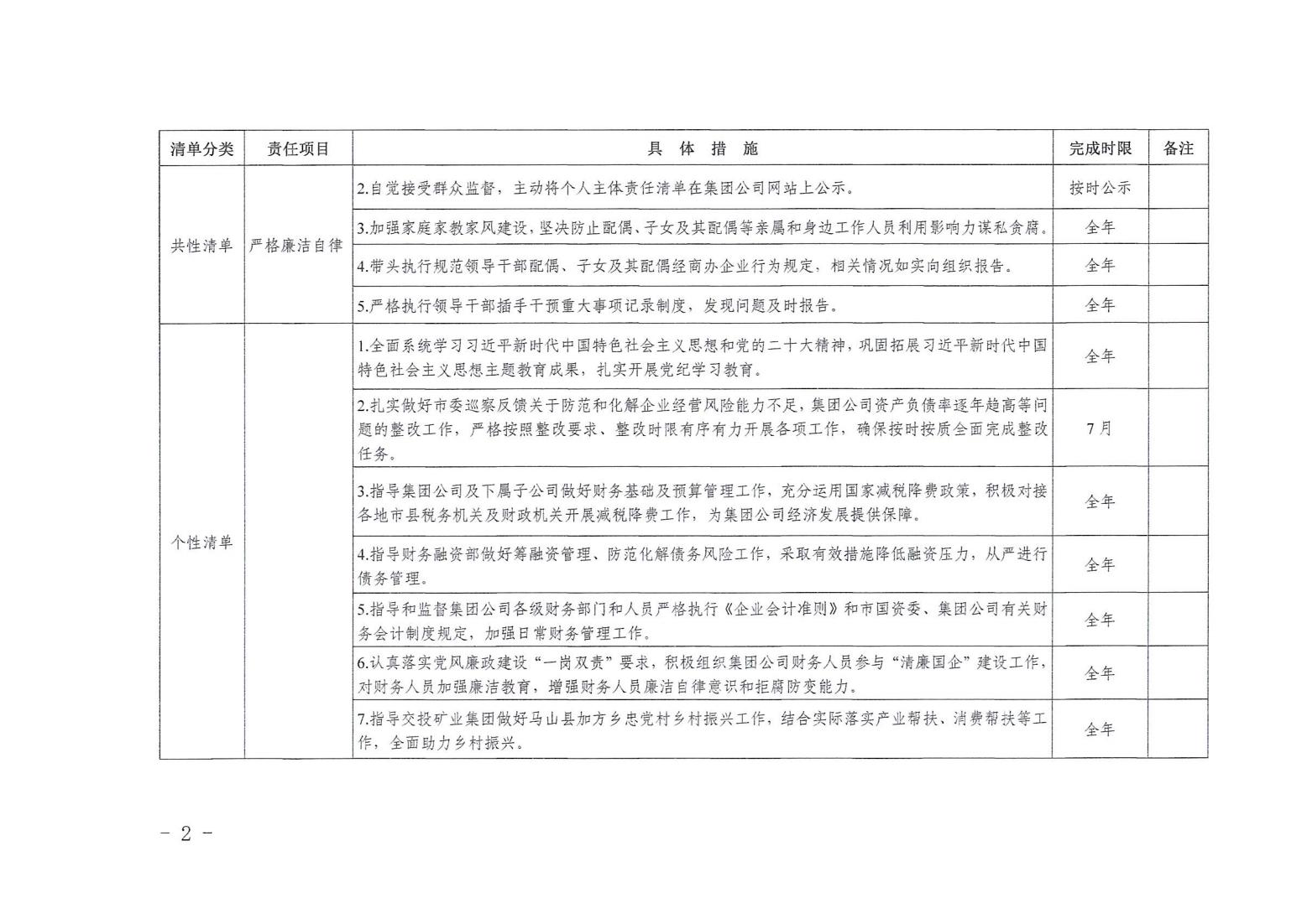 领导班子其他成员2024年度党风廉政建设“一岗双责”清单(六)