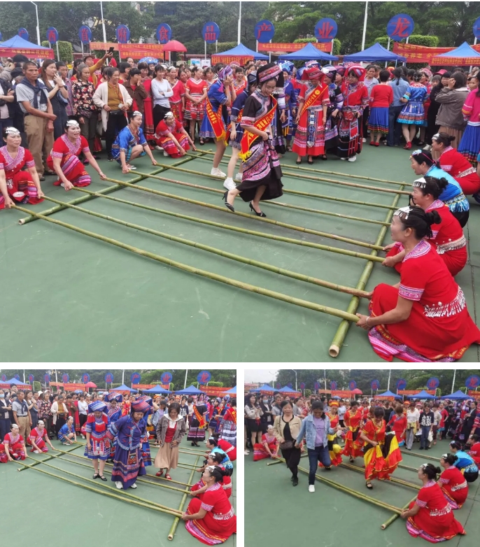 “跳竹竿”不仅是壮族人民的一种娱乐,也是壮族人民传统文化的重要组成部分。它代表了壮族人民坚韧不拔的精神和勇敢、乐观、向上的生活态度。图为集团职工参与社区跳竹竿舞活动
