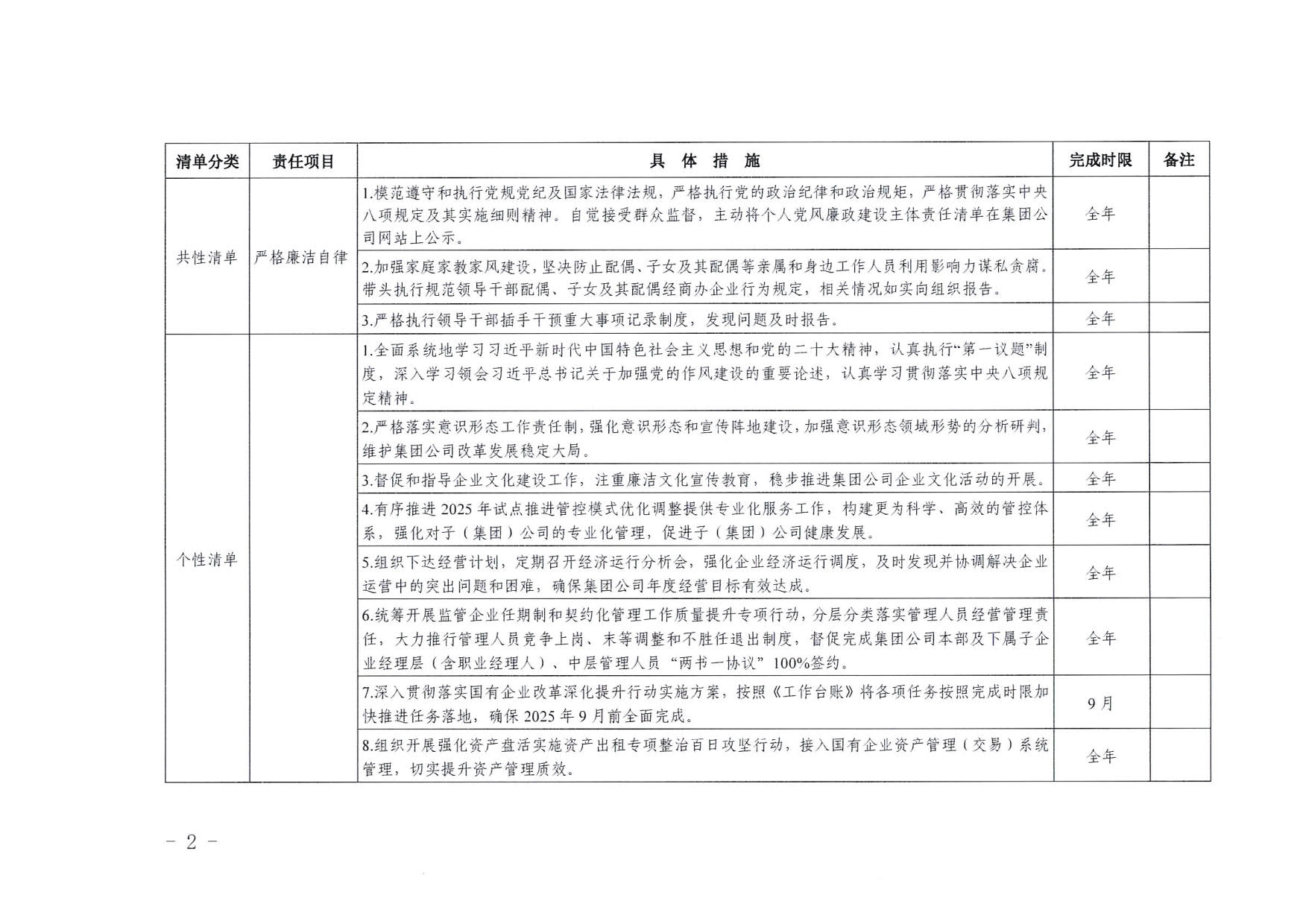 调教 领导班子其他成员2025年度党风廉政建设“一岗双责”清单(二)
