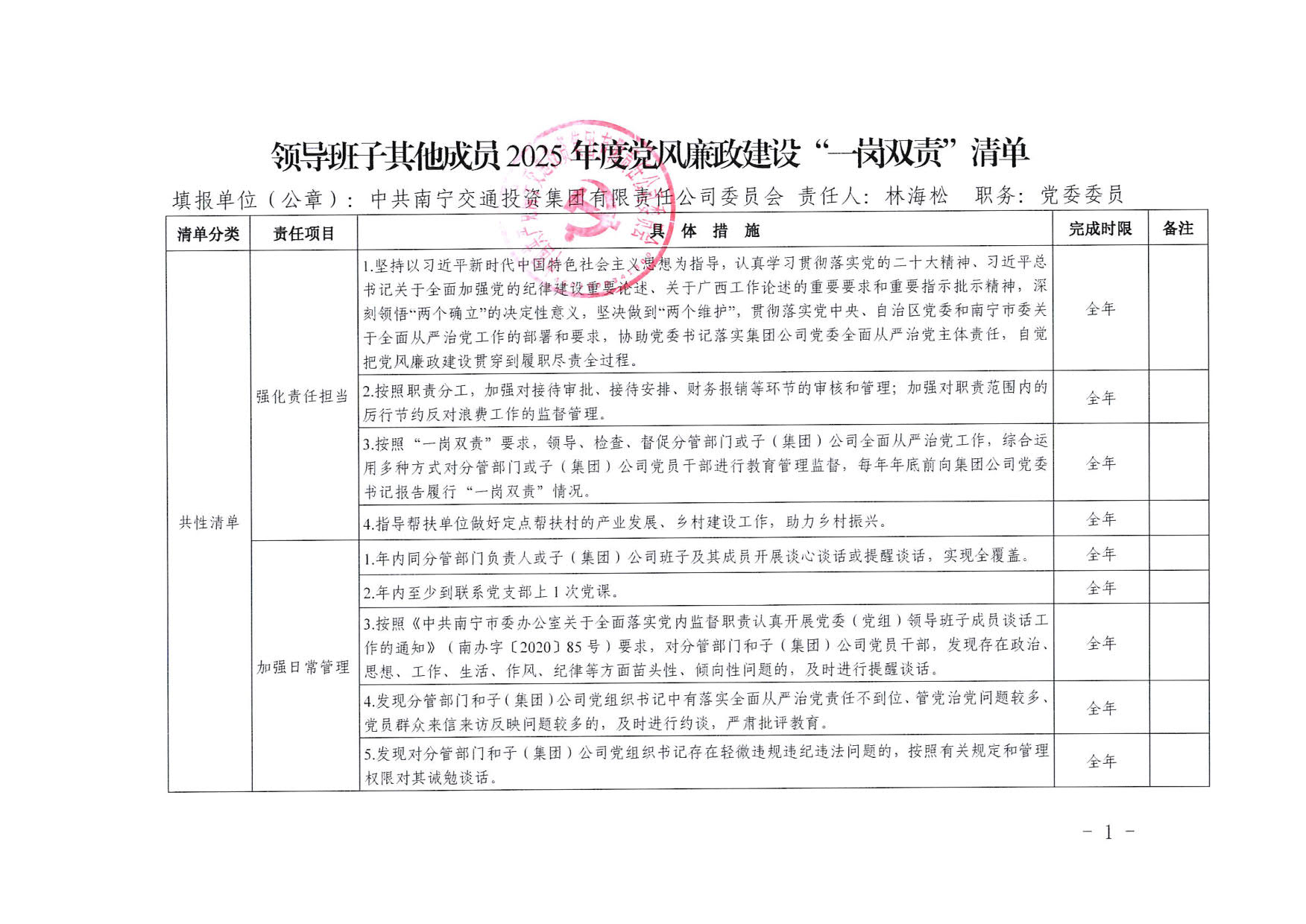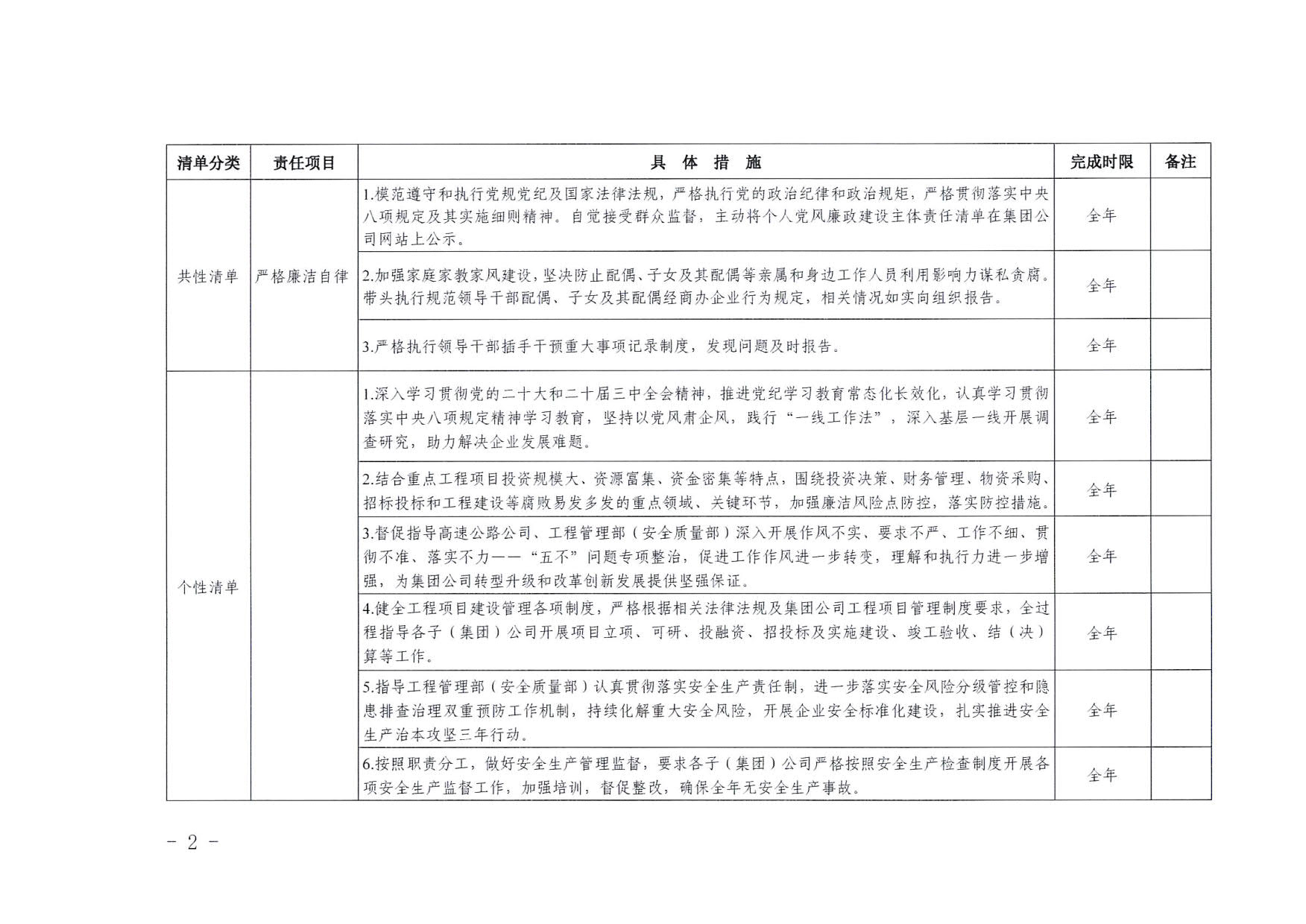 调教 领导班子其他成员2025年度党风廉政建设“一岗双责”清单(二)