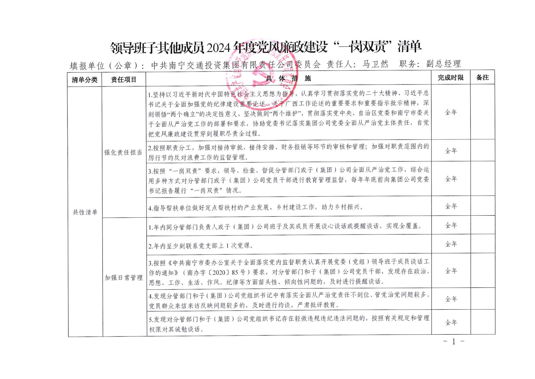 调教 领导班子其他成员2025年度党风廉政建设“一岗双责”清单(四)