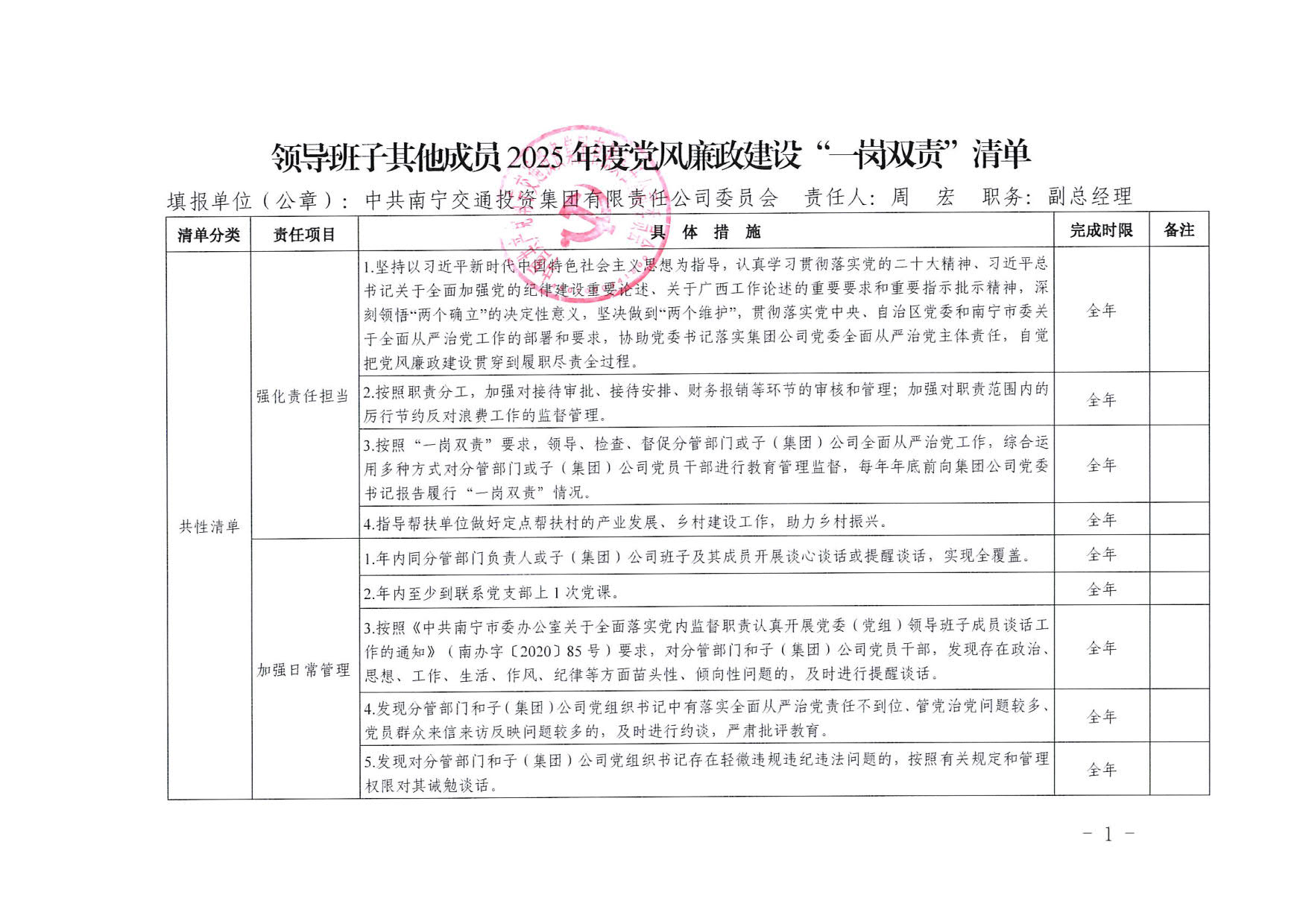 调教 领导班子其他成员2025年度党风廉政建设“一岗双责”清单(七)
