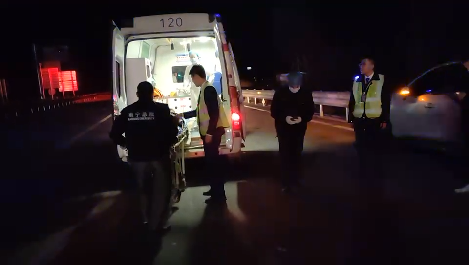 2日0时许救护车抵达现场,收费员协助医护人员将司机扶上担架送往医院救治。据了解,事故当晚,司机身体情况已恢复稳定。