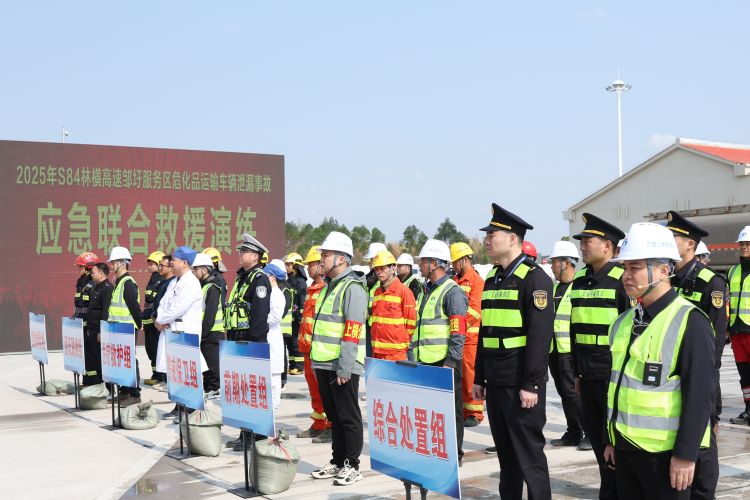 为全面提升林横高速对服务区危化品运输泄漏突发事故的应急处置能力,加强“一路多方”各部门间的协同配合,保障过往司乘生命财产安全,3月18日,调教 下属南宁高速公司联合宾阳县应急局、生态局、交警、消防救援大队、卫生局及区执法局二支队四大队、六大队等单位,在林横高速邹圩服务区开展危化品运输泄漏突发事故应急联合救援演练。