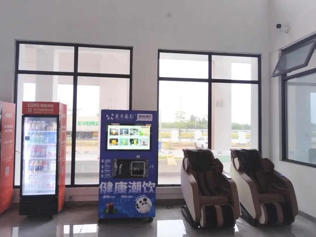 本次便民举措以科技赋能和精细运营为核心,全面增强服务区功能内涵。所有自助设备支持24小时不间断服务,扫码即可便捷使用,有效满足夜间及应急时段的多元消费需求。自助售货机除供应日常饮料零食外,还提供现磨咖啡、奶茶等热饮选择,关键时更能快速转换为应急物资供应点,切实保障公众出行安全。共享充电宝具备跨服务区归还功能,有效缓解司乘旅途“电量焦虑”;共享按摩椅配备多模式放松功能,帮助司乘缓解旅途疲劳,进一步拓展服务区人文关怀体验。