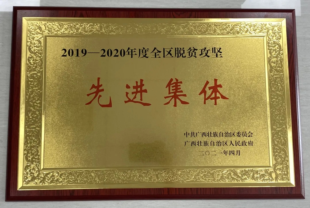 近日,中共广西壮族自治区委员会、广西壮族自治区人民政府公布关于表彰全区脱贫攻坚先进集体和先进个人的决定,调教 荣获2019-2020年度“全区脱贫攻坚先进集体”称号。
