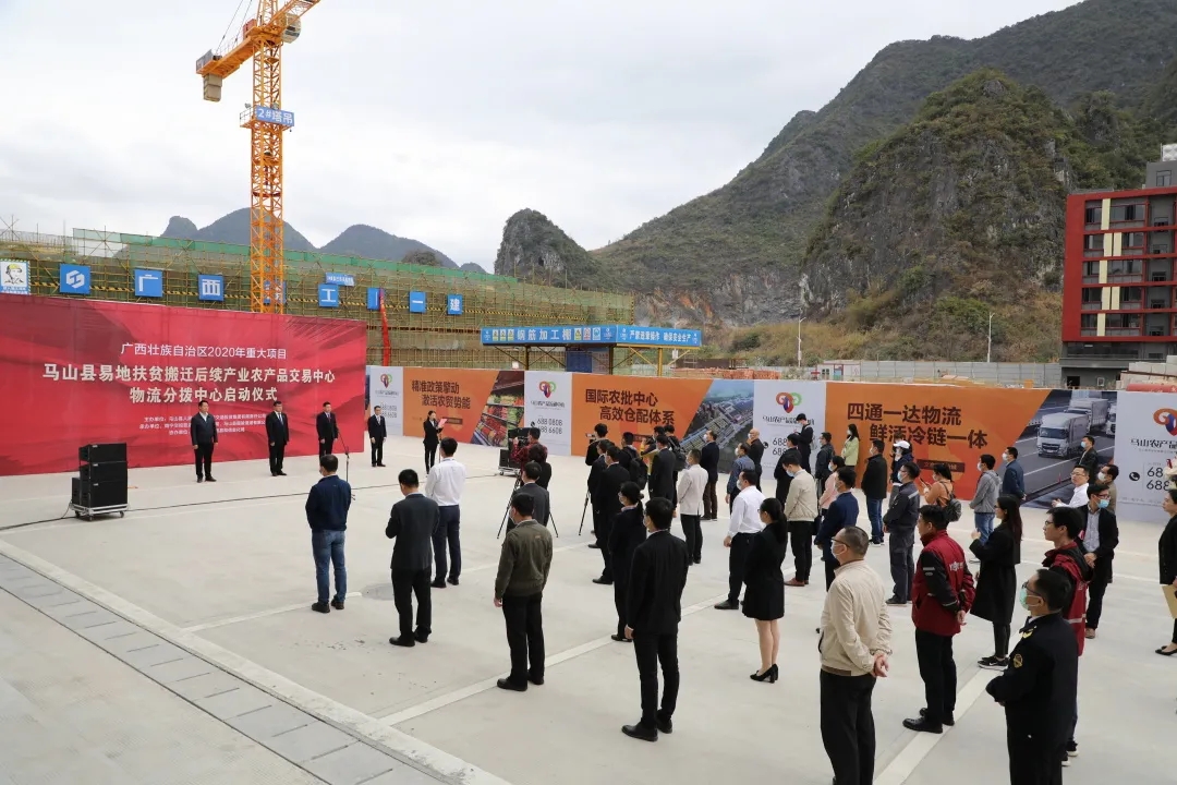 05-14调教 马山县易地扶贫搬迁后续产业农产品交易中心项目举行物流分拨中心开业仪式