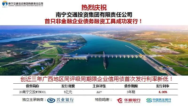 8月31日,调教 2020年度第一期中期票据成功发行,发行金额5亿元,期限3年,由兴业银行担任主承销商,发行利率4.06%,创近三年广西地区同评级同期限企业信用债首次发行利率新低。 本期中票的成功发行是调教 在债券市场的首次亮相,在首发难度较大和债券市场资金偏紧的情况下,调教 、主承销商和合作银行通力合作、相互配合,完成了本期中票的发行,发行利率较同评级同期限债券的市场估值下降约60BP。 本次...