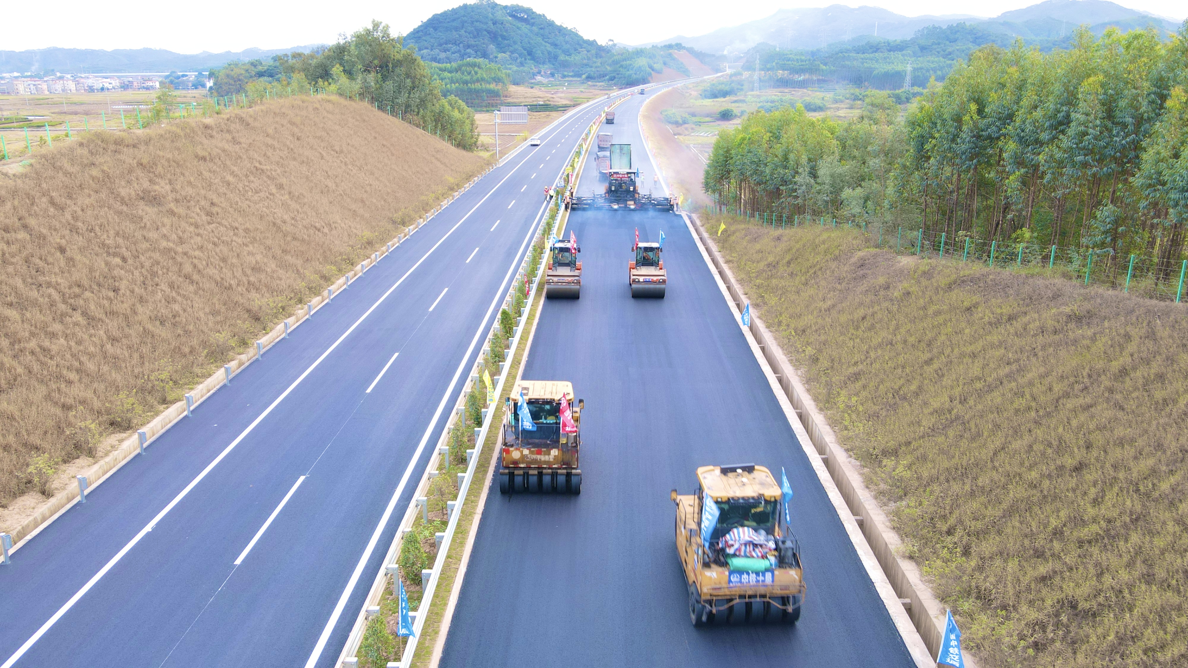 上林至横县公路一期工程全线沥青路面摊铺圆满完成