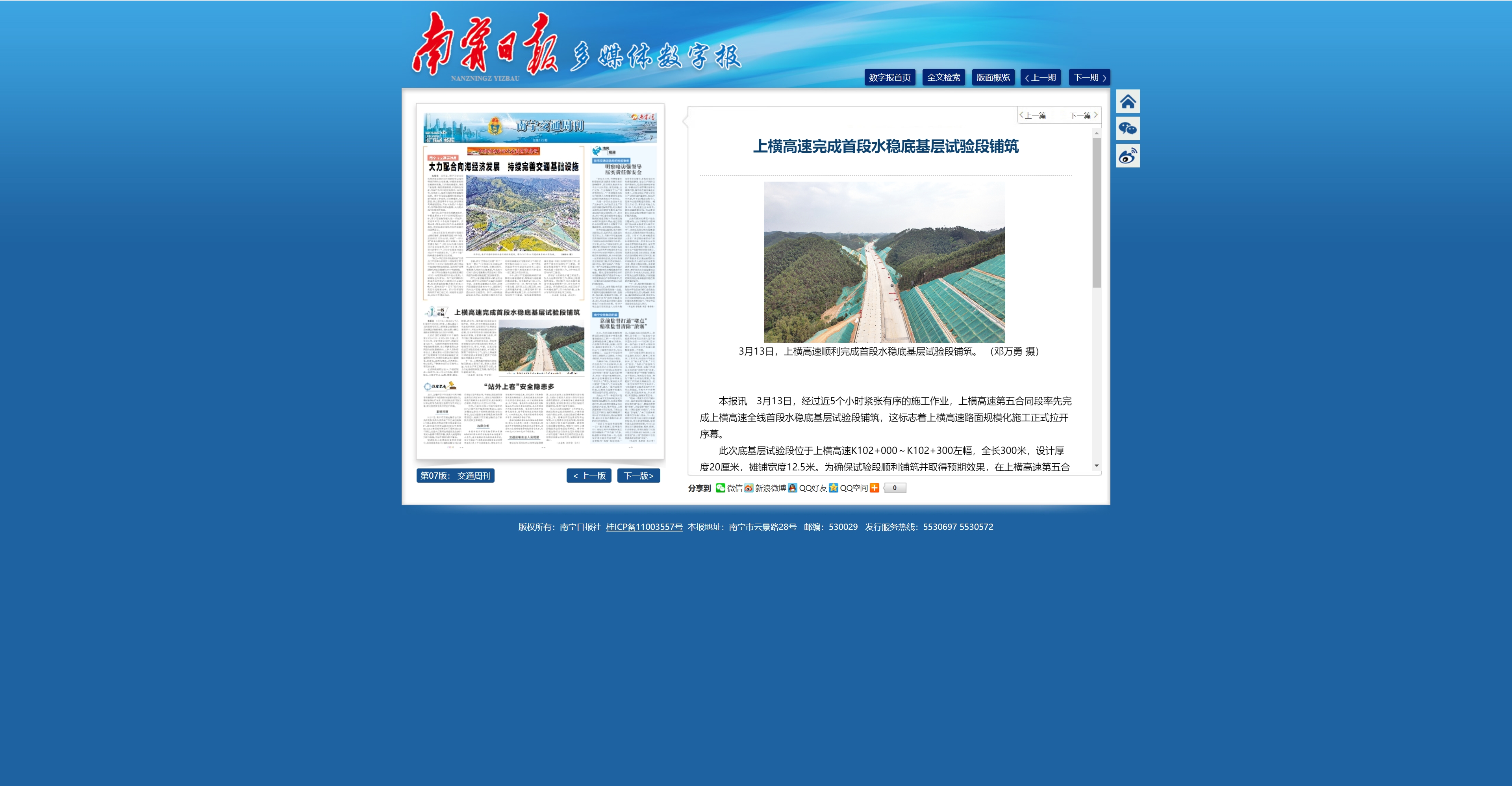 03-20上横高速完成首段水稳底基层试验段铺筑